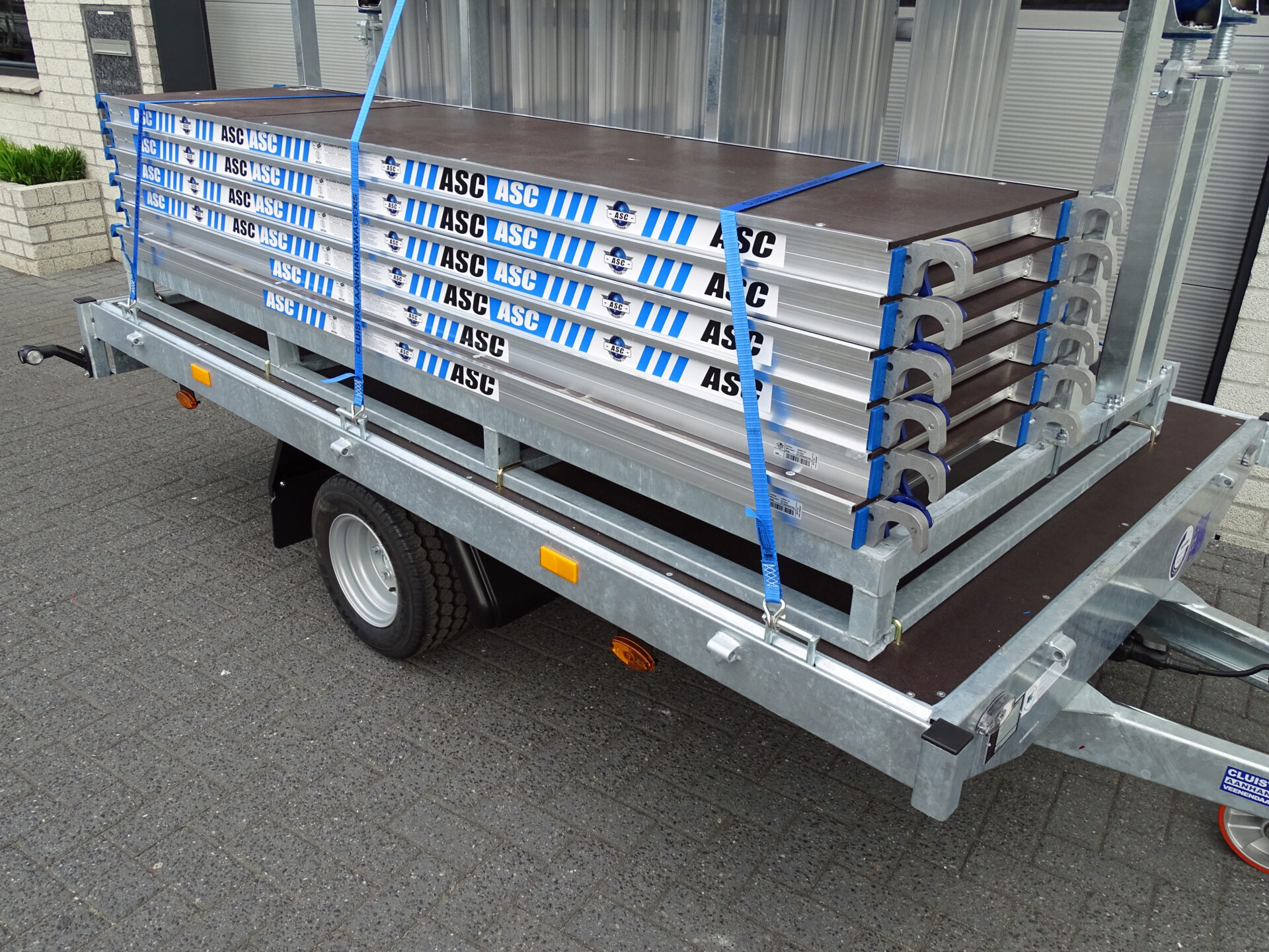 Hapert Azure H-1 1350kg 280×160 verlaagd 195-50 B10 + steigerbok op aanhanger gezet + spiraalsnoer+ breedtelampen + zijverlichting + onderbouwslot