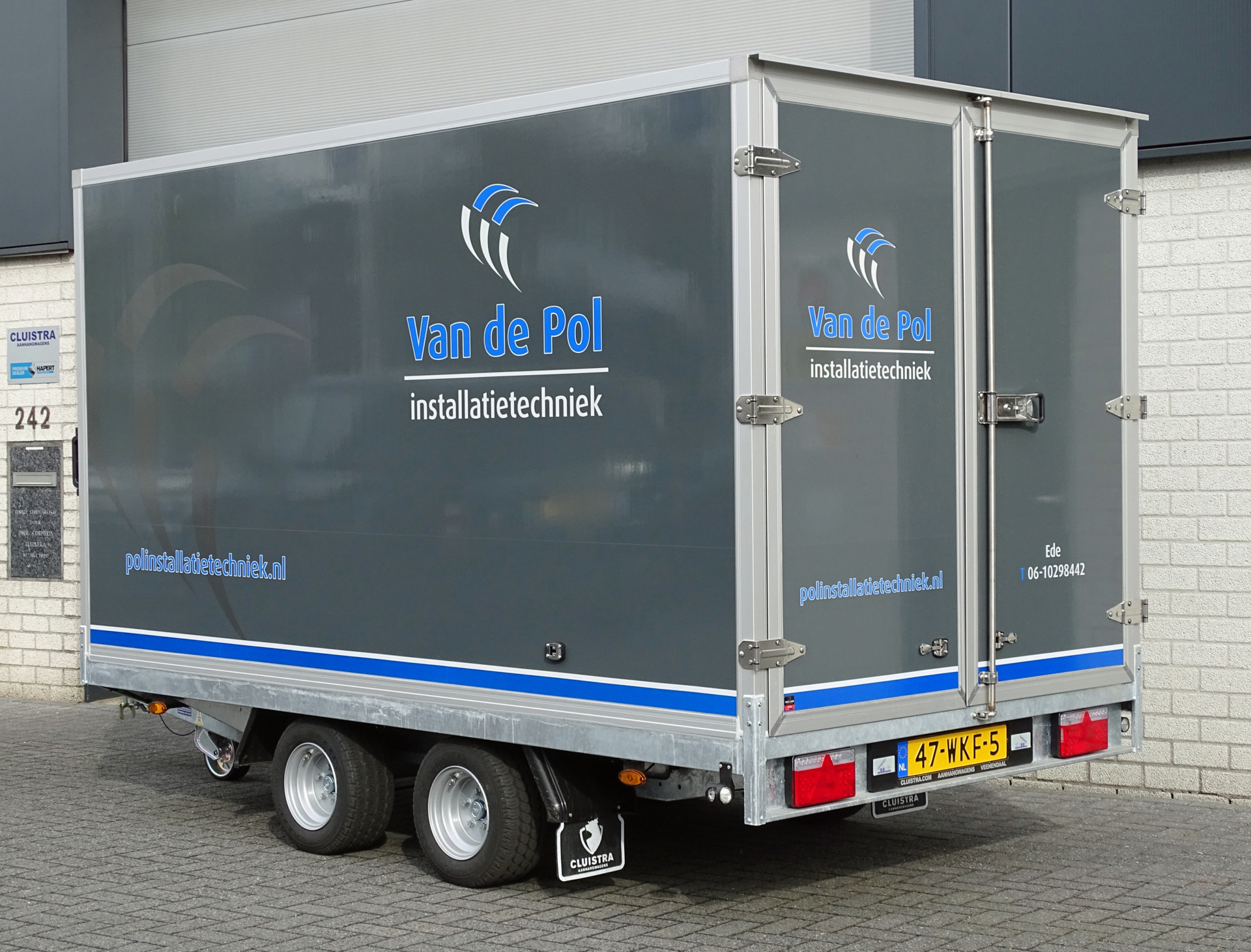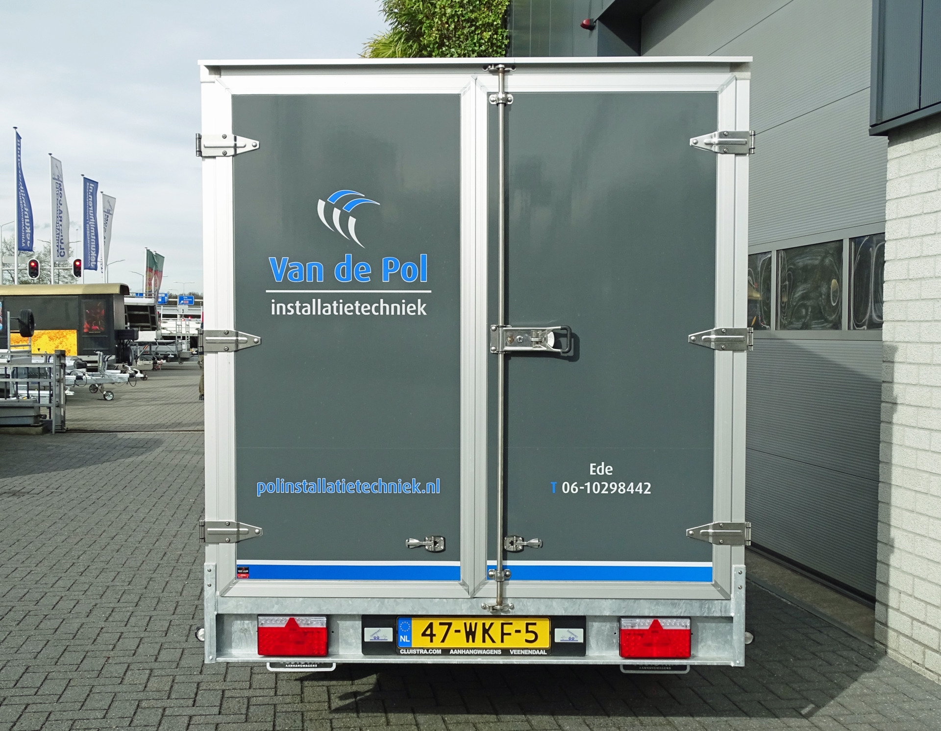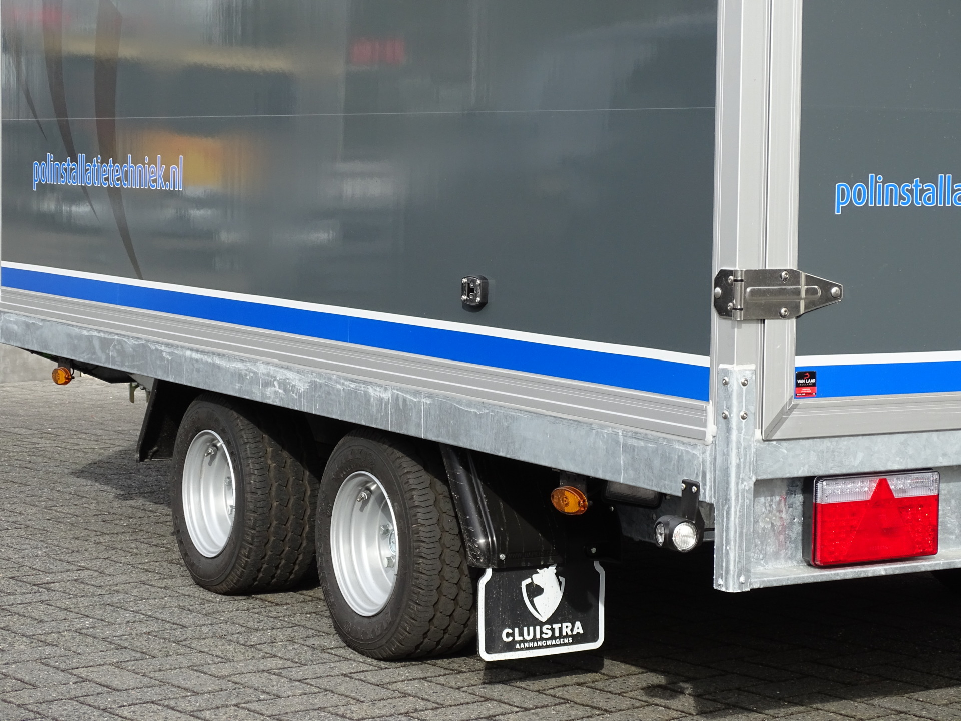 De gesloten Sapphire aanhangwagen is door van Laar Reklame vakkundig in de huisstijl van de klant gemaakt.