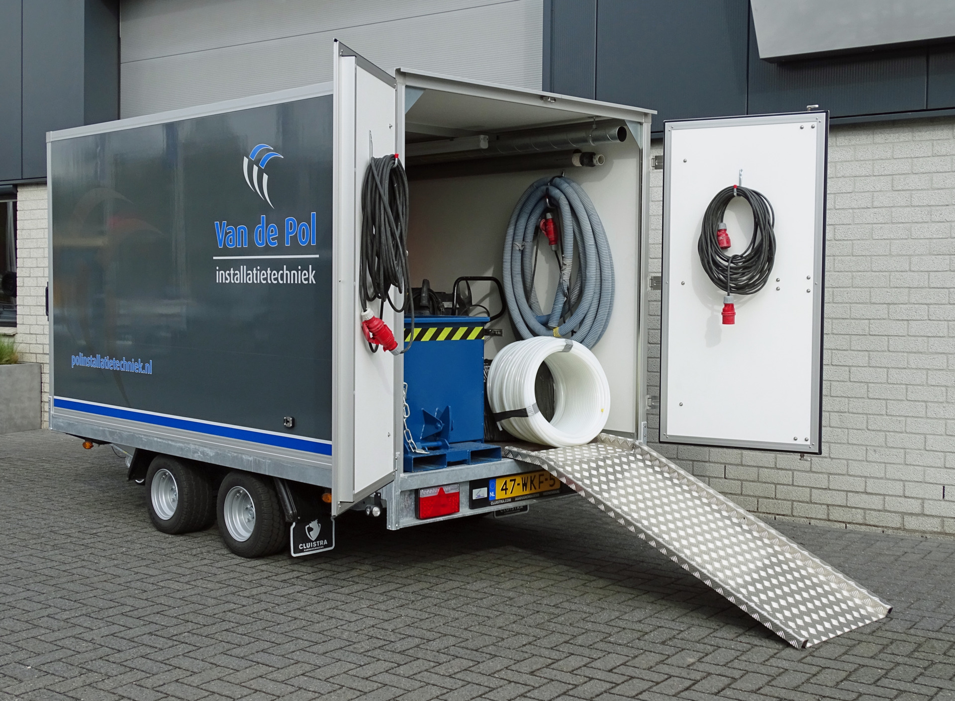 Van de Pol Installatietechniek heeft recent een nieuwe gesloten aanhanger in gebruik genomen met een complete installatie voor het frezen van vloerverwarming.