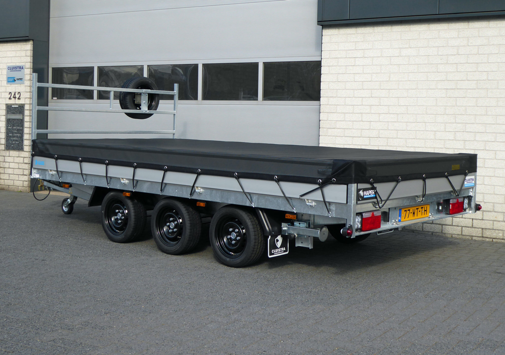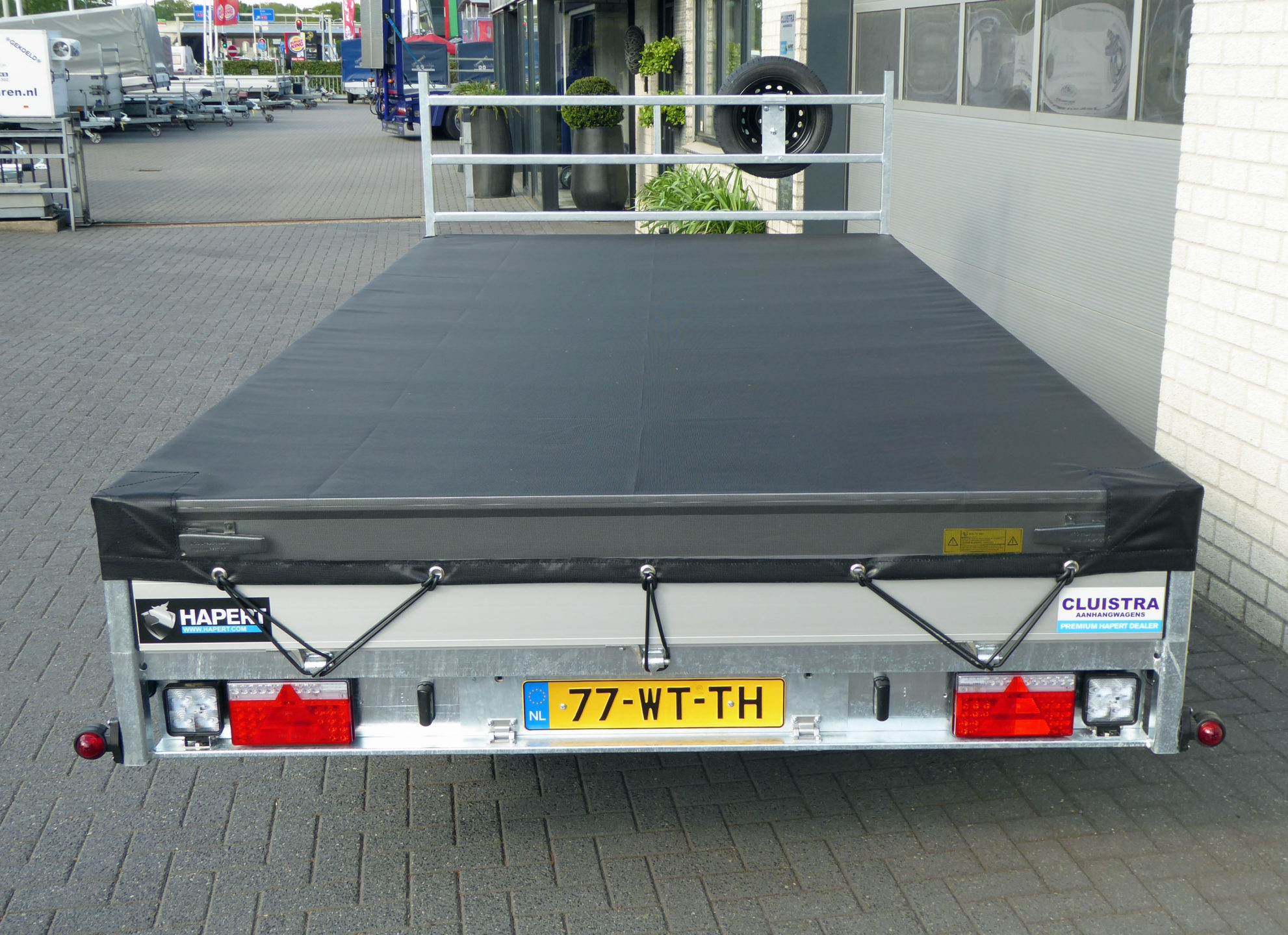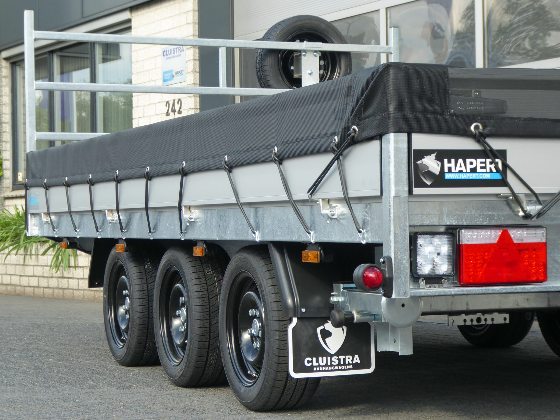 Hapert Azure H-3 3500kg 405×200 cm: multi-uitvoering, paraboolvering, voorrek, reservewiel aan voorrek, fijnmazig net, onderbouwslot, aluminium kist, spiraalsnoer, extra led zijlampen, led breedte lampen, ledverlichting, led achteruitlampen