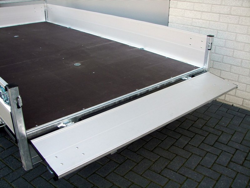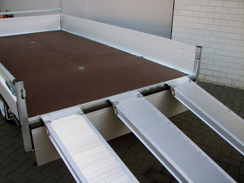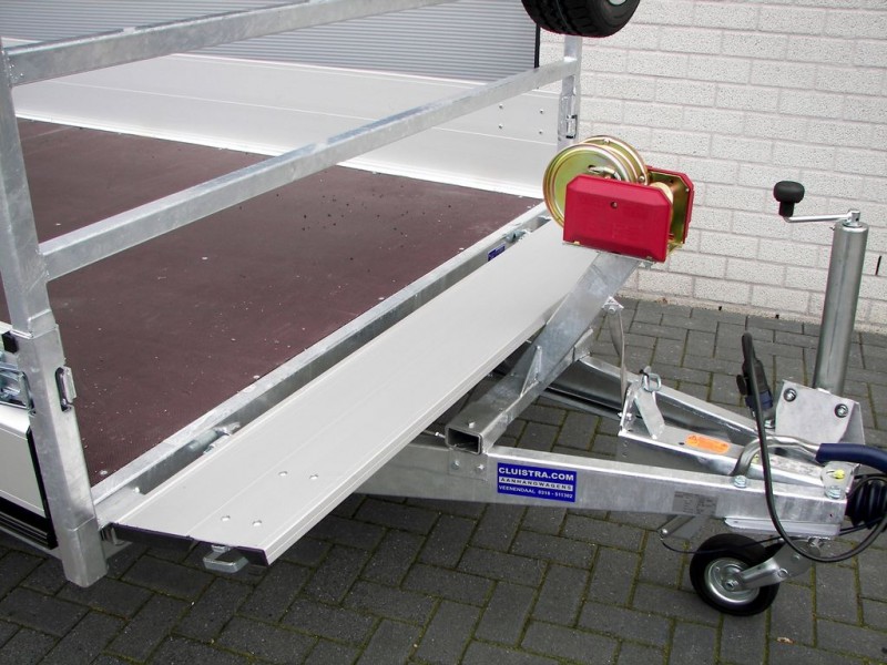 AL Multi; 3 oprijplanken, lier, voorrek, rongpotten in vloer, rubber stootrand, reservewiel voorop, onderdekslot